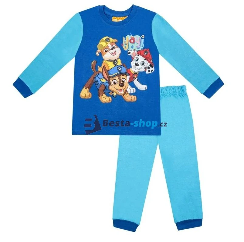 Krásné pyžamo s motivem Tlapková Patrola - Paw Patrol bude vašemu chlapečku slušet a zajistí mu pohodlí po celou noc. Je vyrobené ze 100% bavlny. Horní díl má kulatý výstřih, dlouhé rukávy a přední stranu zdobí obrázek pejsků z dětského seriálu Tlapková patrola (Paw Patrol). Spodní díl má elastický pas, pružné lemy a pohodlný střih.