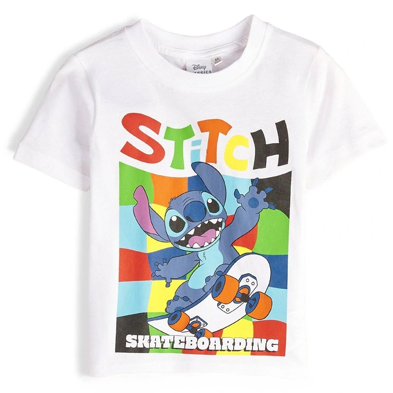 Chlapecké tričko s krátkým rukávem Stitch bílé Skateboard