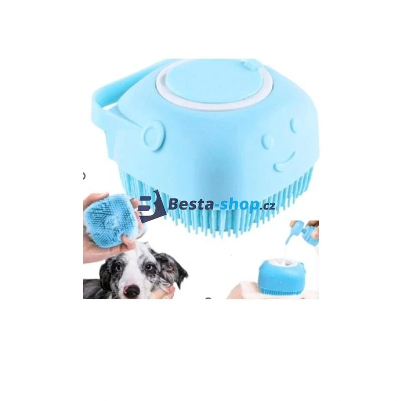 SILIKONOVÝ KARTÁČ NA MYTÍ PRO PSA A KOČKY S DÁVKOVAČEM ŠAMPONŮ